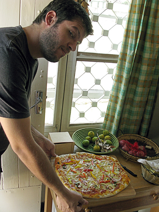 Pizza is one of my favourite dishes. It is easy to make and also a good excuse to use any left overs or veggies that are turning bad in your fridge. You can be extremely creative by topping up the dough with whatever you can imagine. My favourite base sauce is canned tomato paste shimmered for a few minutes with onions, loads of garlic, oregano and a bay leaf and sometimes grated fresh tomato. There were times though that I just used ketchup,spicy sauces or even creamy-white cheese sauce. I usually make pizza dough once per week or even once per two weeks and keep it in the fridge.