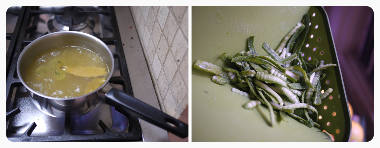 To prepare the zucchini skins, boil a cup of water and add them in for 1 minute until they get tender.