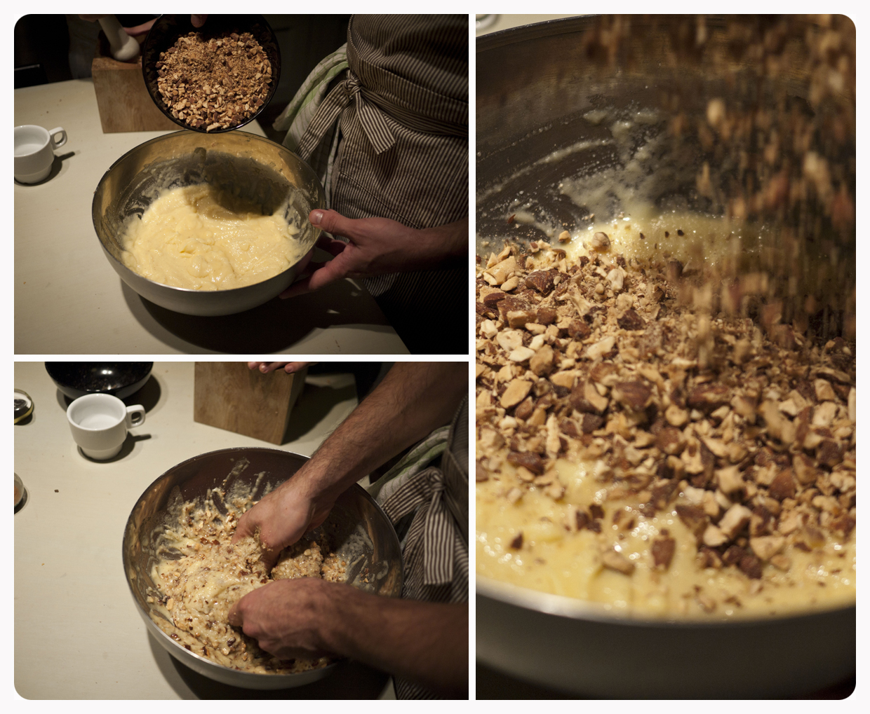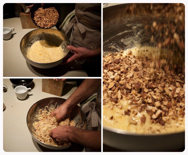 Add the crashed roasted almonds in the mixture and keep blending with your hands.