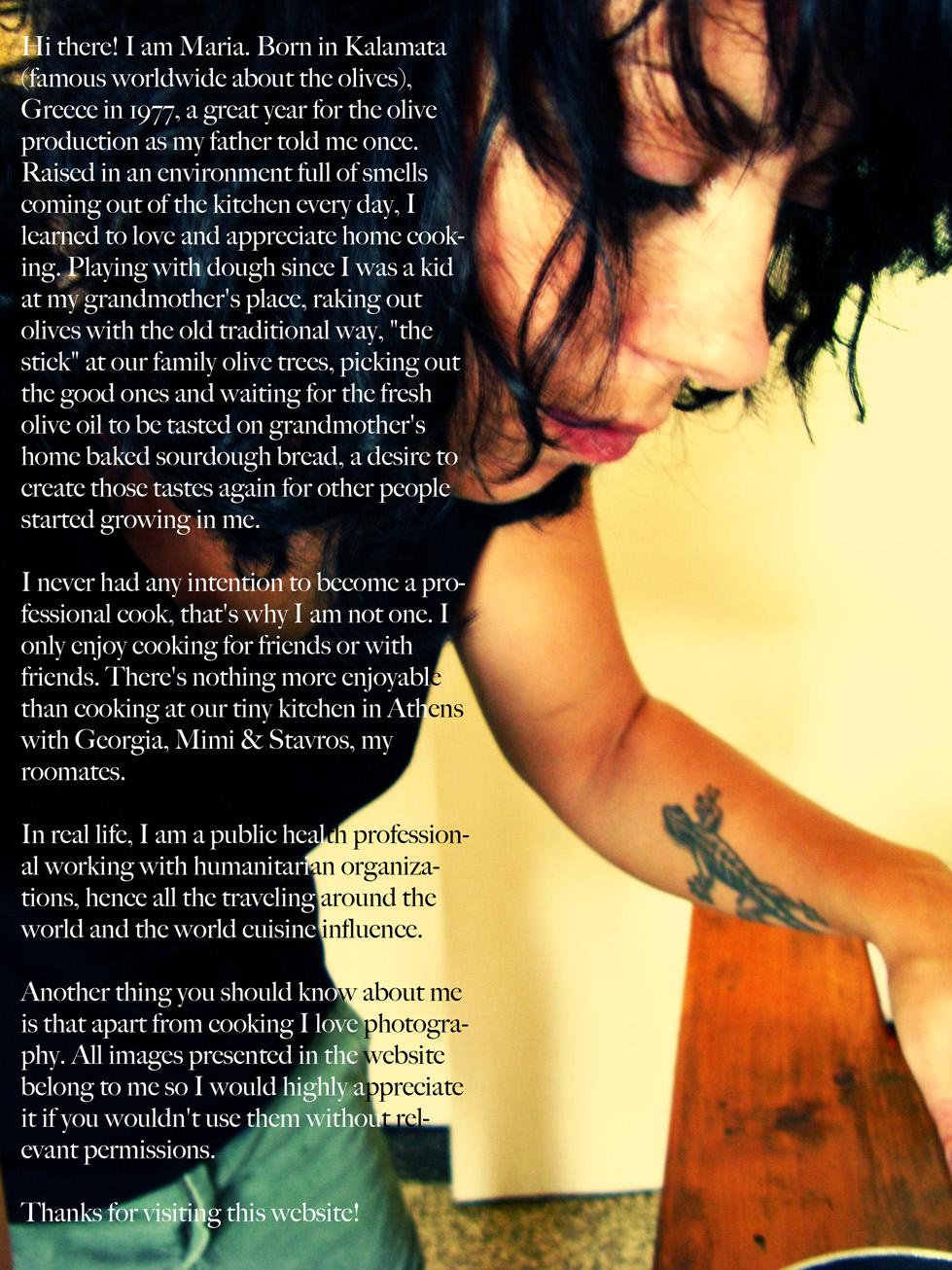 “Maria Tsolka has been cooking unprofessionally for over ten years and still loves every minute of it”