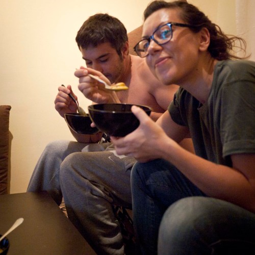 I had prepared almost everything for the soup and I was a step away from blending it when I realized that i was missing the european socket adaptor. Our blender was purchased in Uganda and carries a British outlet. We only had one adaptor at the house and it was Mimi’s (my other roommate). Mimi is actually in Vietnam or Cambodia or somewhere in the area with the “triorofo” gang on holidays. Georgia texted her to ask whether she has the adaptor or she knows where is it. Don’t forget it is a bit late evening, Saturday night and the possibilities of finding a place to buy an adaptor and enjoy our soup were of course minimum. Anyway we got no answer for a while. However we have this mini market shop in the neighborhood, just a across our house, owned by an old sweet guy, Mr Giorgos who just happen to have everything. I actually would like to call his shop “Mr Giorgos wonder store” cause he has managed to fit everything in pretty limited space, one might say. Long story short, Georgia found a universal adaptor at his shop and we managed to blend the soup.